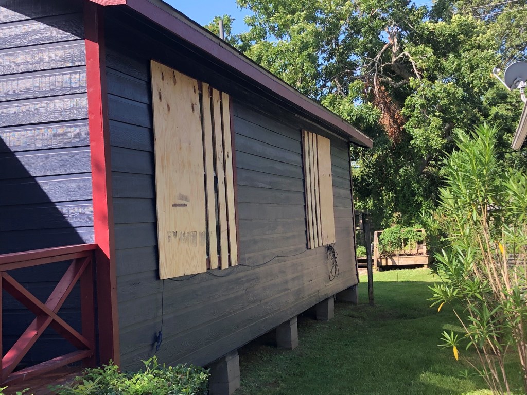 My wife’s school announced on Tuesday that they would be closed for the rest of the week due to the approaching storm, as did most schools in the area. I am unable to make the necessary hurricane preparations by myself, so she came home. Our plan was that she would stay here if it would hit as a Cat. 1 or 2 and she would leave with the cats for a 3, 4, or 5. I ain’t for that leaving, so I’d stay home regardless. Our house has been through 14 hurricanes (2 Cat 4s, 2 Cat 3s, 4 Cat 2s, and 7 Cat 1s, plus a dozen tropical storms…and it is less than a mile from Galveston Bay). I’d feel safer in my house than any modern structure in the city. On Tuesday evening she and my brother started boarding up our windows and they finished on Wednesday morning. By the time we finished, it was looking like the storm might hit around 50 miles to our east, but that would still put us in the middle of some wicked winds. Then, the weather guessers started shifting the track further east. Laura ended up coming ashore about a hundred miles to our east instead. Wednesday night, we got a couple of wind gusts in the 25-30 mph range, but no rain.