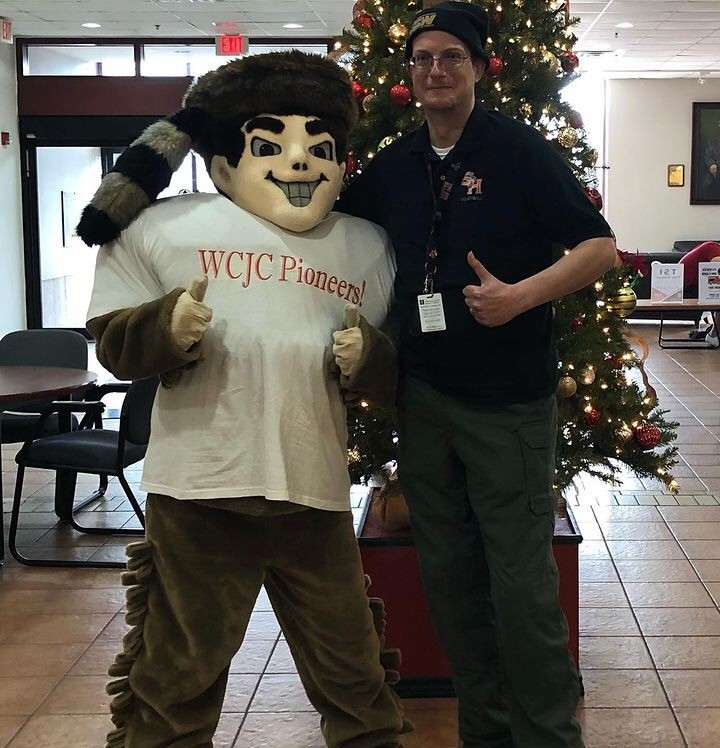 After four years of trying, I finally got my picture taken with our mascot, Pioneer Dan!